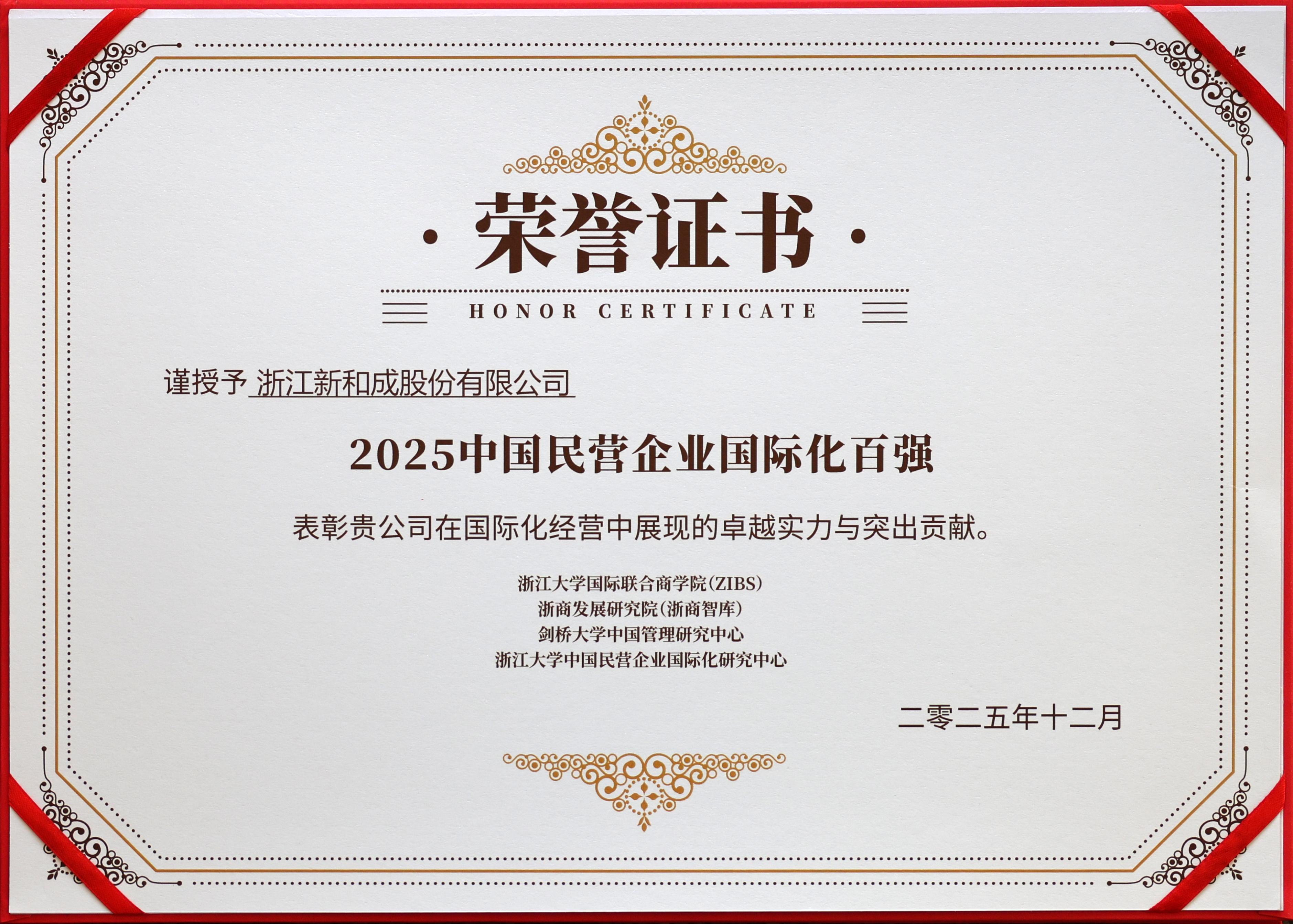 On December 12, the forum “Resilience, Symbiosis, Leadership – Release of the Top 100 Chinese Multinational Private Enterprises and the Zhejiang Business Think Tank Dialogue on the 15th Five-Year Plan” was successfully held in Hangzhou. At the event, the Center For Chinese Multinationals (CCM) of Zhejiang University Business School (ZIBS) released the Top 100 Chinese Multinational Private Enterprises 2025 list. NHU was honored to be included, in recognition of its forward-looking global strategy, robust and continuously innovative R&D system, and growing international influence.